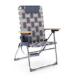 A modern luxury experience with a classic twist. This web chair features an extended back design that provides back and shoulder support, a premium wood composite arm and four positions that allow you to get comfortable or recline in the sun.