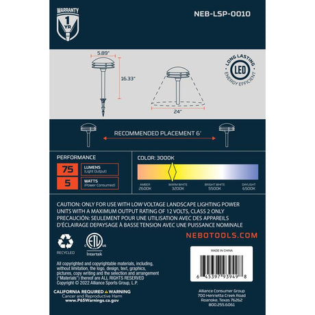 $39.94$39.99Unit price /UnavailableIn stock (190 units)NEBO Low Voltage 5 W LED Pathway Light 1 pk
