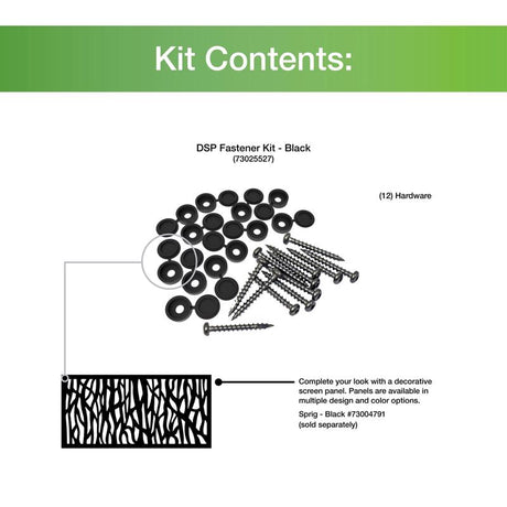 - 12% offBarrette Outdoor Living No. 8 X 1-1/2 in. L Square Black Coarse Screen Panel Fastener Kit 12 pk $4.94$5.59Unit price /Unavailable
