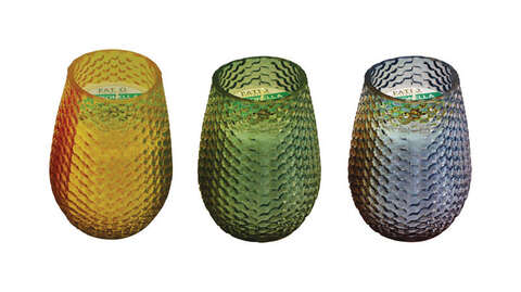 These beautiful 9-ounce dotted glass citronella candles will give your outdoor space a fun and sophisticated look. The wine-bottle green, smokey brown and grey glass has a stylish relief dot pattern from top to bottom, giving them a fun textured look and feel. The wax of the candles sits low within the glass to help protect the flame from wind outdoors, so go ahead and line them up on your patio table to enjoy a night without bugs.