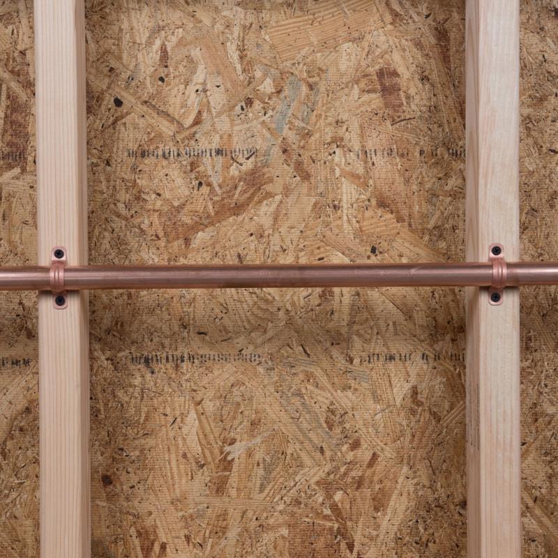 • Allows pipe to be flush mounted to walls, joists and rafters.