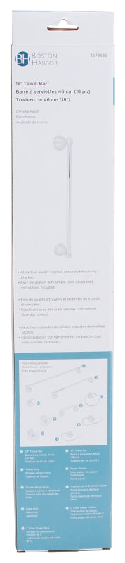 Boston Harbor L5018-26-103L Towel Bar, 18 in L Rod, Chrome, Surface is backordered and will ship as soon as it is back in stock.