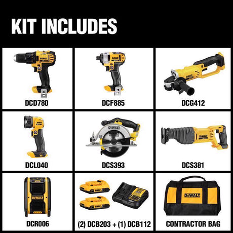 DeWalt 20V MAX Cordless Brushed 7 Tool Combo Kit