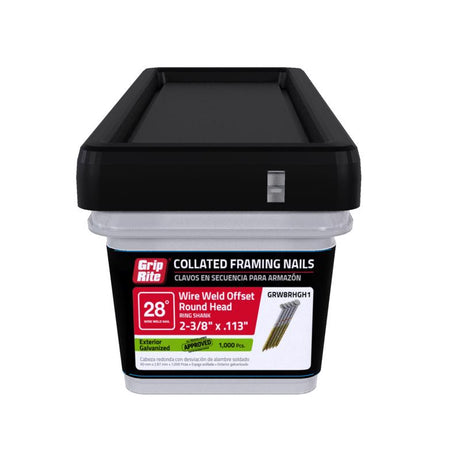 $15.94$16.99Unit price /UnavailableIn stock (3184 units) Grip-Rite 2-3/8 in. L Angled Strip Hot-Dip Galvanized Framing Nails 28 deg 1000 pk