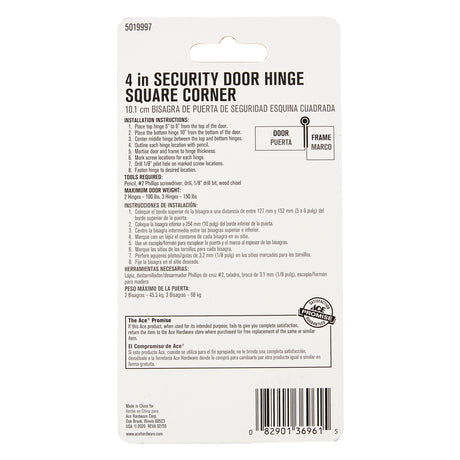 - Ace 3-1/2 in. L Stainless Steel Residential Door Hinge 1 pk $15.94- $15.99Unit price /UnavailableIn stock (1013 units)