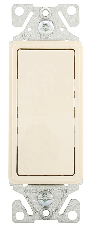 Eaton Wiring Devices 7500 7501LA-BOX Rocker Switch, 15 A, 120/277 V, SPST, Lead Wire Terminal, Light Almond