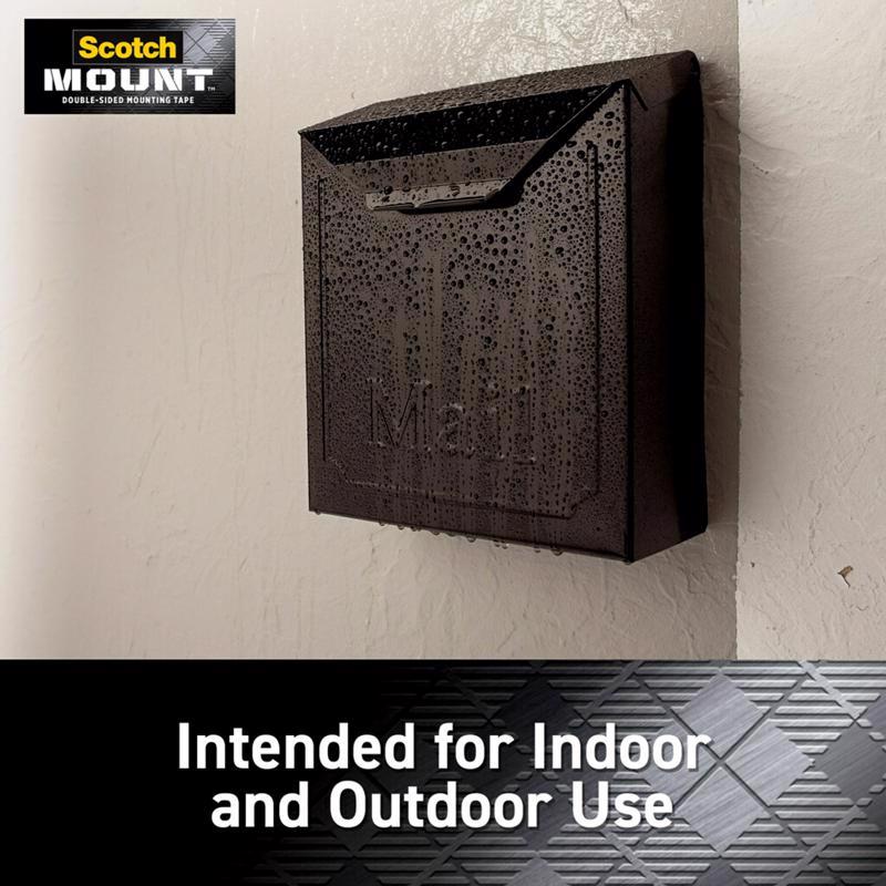 For your toughest jobs, go for our strongest hold-Scotch-mount Extreme double-sided mounting tape with its 3M industrial strength adhesive. Equipped with our powerful permanent adhesive, this double-sided tape defies gravity, holding an item up to 30 pounds. It's weather resistant for a long lasting bond, indoors and outdoors. So whether you're mounting shelves in your new apartment or adding wall organization to the garage, Scotch-mount Extreme double-sided mounting tape does the job quickly, easily and without the hassle of tools.
