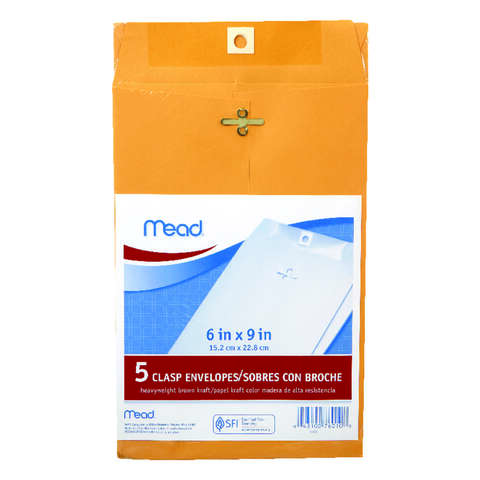 Mead 6 in. W X 9 in. L A10 Brown Envelopes 5 pk, Pack of 12