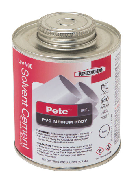 - RectorSeal Pete Clear Solvent Cement For PVC 16 oz $15.94- $15.99Unit price /Unavailable