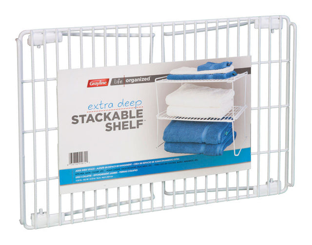 Grayline Life Organized 12 in. H X 9 in. W X 20 in. L PE Coated White Stackable Shelf is backordered and will ship as soon as it is back in stock.