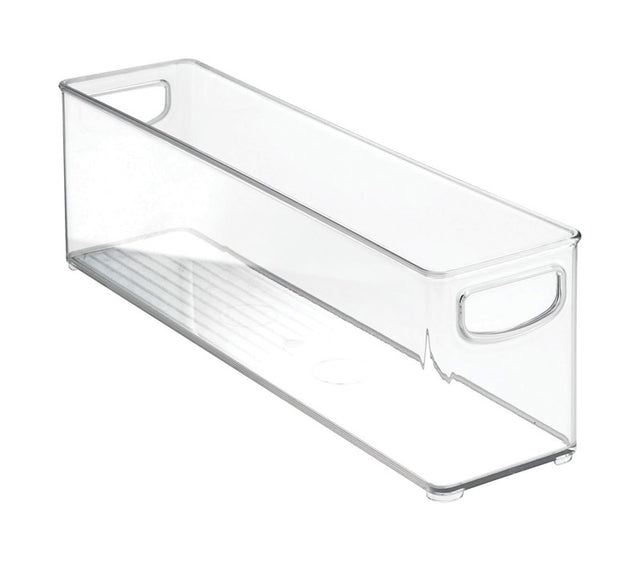 The InterDesign Storage and Organization Binz is the perfect solution for organizing any kitchen. This versatile bin is made of durable, clear plastic and features integrated handles, measures 16 x 4 x 5".