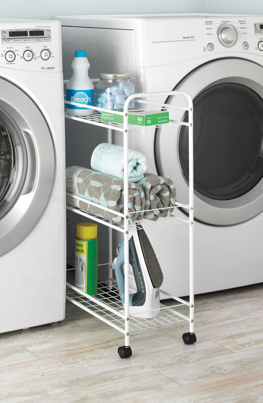 The Whitmor slim household cart is the perfect combination of style and functionality. Slip it between the washer and dryer or in a narrow bathroom. This utility cart is ideal for organizing your towels, washing powders and other household goods. This cart features three shelves with raised edges to prevent things stored on them from falling. This utility cart has a unique style that will enable it to blend easily with your home decor. This utility cart features wheels on the base that allow it to move from one place to another easily. Made of durable epoxy coated steel, this utility cart is sturdy and long lasting and will last for many years. Whitmor is a 4th generation family-owned and operated business. Since 1946, Whitmor has been dedicated to bringing organization home by creating products that simplify everyday life. Ensuring that those products are built with integrity, value and innovation is our commitment to you. And our promise is that we will always be here for you should you ever need us as we stand behind our product 100%.