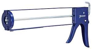Uniframe construction for greater durability. Thumb-activated pressure release stops caulking flow. Powerful piston design for trouble-free performance. With seal puncture tool, spout cutter and ladder hook. No more hand tiring ratcheting. No mess and no waste. Recommended for all grades of caulks, sealants and adhesives from heavy to light consistencies. Thrust ratio is 10:1. E-Z load open front cap and cartridge retainer spring.
