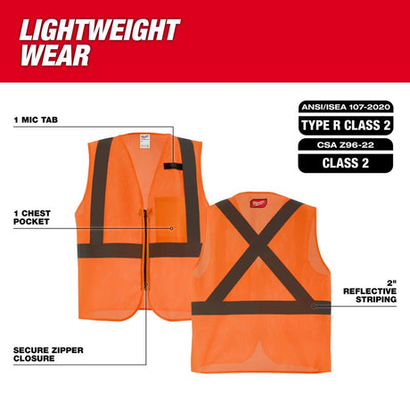 Milwaukee CSA Type R/Class 2 Reflective Mesh/One Pocket Safety Vest High Visibility Orange S/M