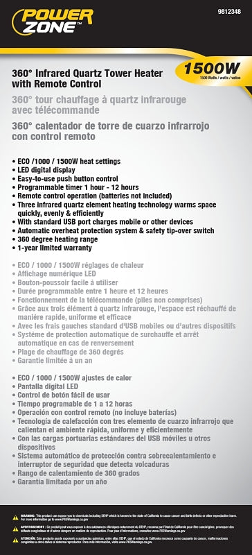 PowerZone PTC-156 360 deg Ceramic PTC Heater, 12.5 A, 120 V, 750/1500 W, 1500 W Heating, Black
