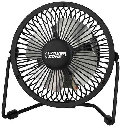 PowerZone CZHV4RSB-BK Mini Fan, 120 VAC, 4 in Dia Blade, 4-Blade, 1-Speed, 360 deg Rotating, Black
