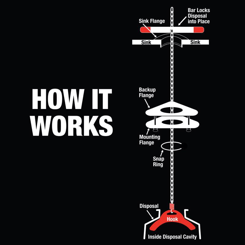 Turn your garbage disposal installation from a 2-person job into a quick 1-person job with the Danco Garbage Disposal Installation Tool. The Danco Garbage Disposal Installation Tool makes garbage disposal installation easy with just three simple steps: hook, lift, and lock. Rather than straining to lift the garbage disposal from below the sink while trying to line up the locking tabs, use the Danco Garbage Disposal Installation Tool to lift it from above your kitchen sink and easily secure it so that it is easy to engage the locking tabs. This installation tool works with various garbage disposal brands including InSinkErator, Kuppet, Whirlaway, and Waste-King.