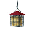 Suet cage feeder brings a variety of feeding options to your songbirds and will have your birds performing acrobatics while feeding. Birds cling to a sturdy wire cage that withstands the rigors of daily use. Fully assembled, included metal hook extends through the roof for easy placement on a tree branch or outdoor supports.
