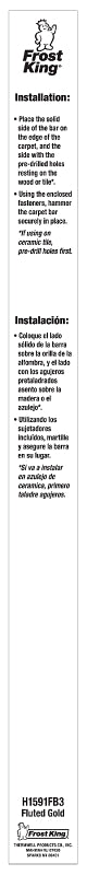 Frost King H1591FB3 Carpet Bar, 3 ft L, 2 in W, Fluted Surface, Aluminum, Gold, Satin