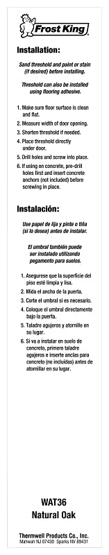 Frost King WAT36H Saddle Threshold, 36 in L, 3-1/2 in W, Wood, Oak, Unfinished is backordered and will ship as soon as it is back in stock.