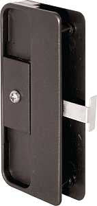 Used by several door manufacturers for non-handed mortise installations. Sliding activator button designed for Jim Walters sliding roll-formed screen door. Includes black plastic inside pull and latch activator, black plastic outside pull, steel latch and installation screws. 2 in W x 4 in H handles.