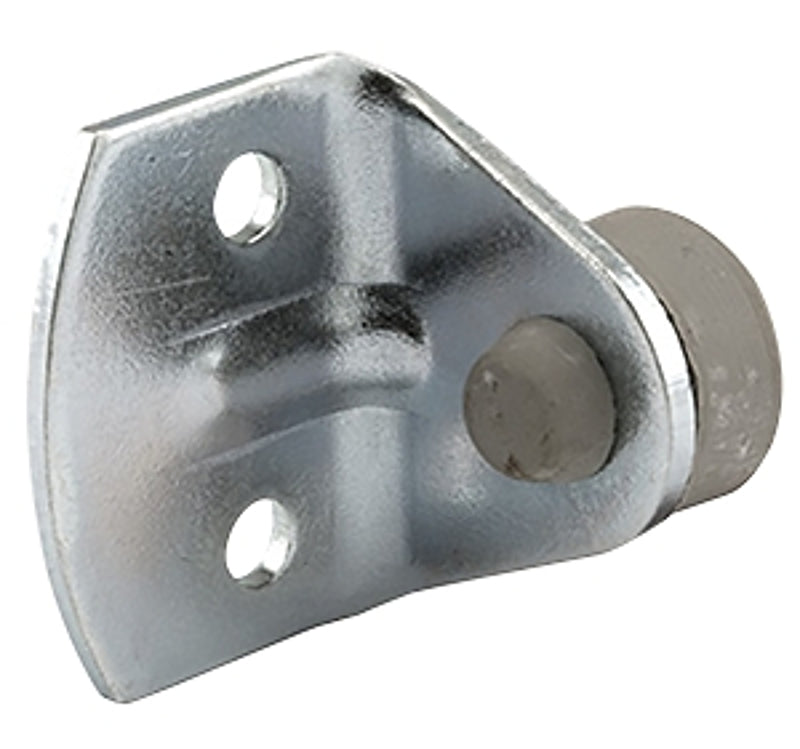 This wardrobe door bumper by Prime-Line Products is constructed of a durable steel bracket and a cushioning, gray rubber bumper. It is easy to install and comes with the necessary fasteners to make mounting a breeze. It is recommended that pilot holes be pre-drilled prior to mounting, to avoid splitting of wood by insertion of screws alone. These wardrobe door bumpers are designed for a universal fit, allowing them to be used with closet doors constructed by a variety of manufacturers. Bumpers like these are strong enough to use on sliding patio doors and help prevent doors from hard slams.