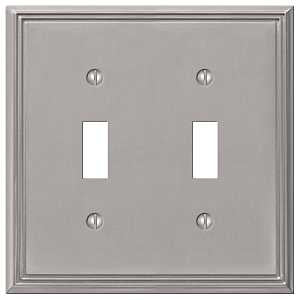 Amerelle 77TTBN Wallplate, 4-3/4 in L, 4-3/4 in W, 2 -Gang, Metal, Brushed Nickel