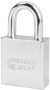 The American Lock No. A5200 solid steel padlock features a 1-3/4 in wide hardened, chrome-plated solid steel body to resist cutting, sawing and corrosion and a 1-1/8 in tall, 5/16 in Dia hardened boron alloy shackle for great cut resistance. Easy to service with a 5-pin APTC12 rekeyable cylinder, this padlock is ideal for securing gates, sheds, truck or van doors and industrial machinery.