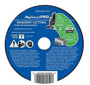 Avanti Pro PBD040063101C Cut-Off Wheel, 4 in Dia, 1/16 in Thick, 5/8 in Arbor, Silicone Carbide Abrasive is backordered and will ship as soon as it is back in stock.