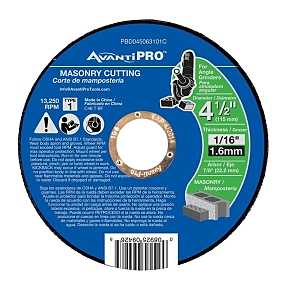 Avanti Pro PBD045063101C Cut-Off Wheel, 4-1/2 in Dia, 1/16 in Thick, 7/8 in Arbor is backordered and will ship as soon as it is back in stock.