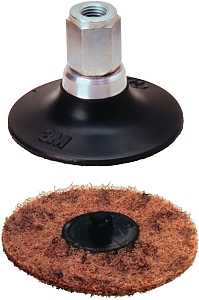Non-woven nylon fiber material impregnated with aluminum oxide mineral. CRS grade disc. For removing old gasketing residue and preparing a surface for a new gasket. Used on steel. TR attachment.