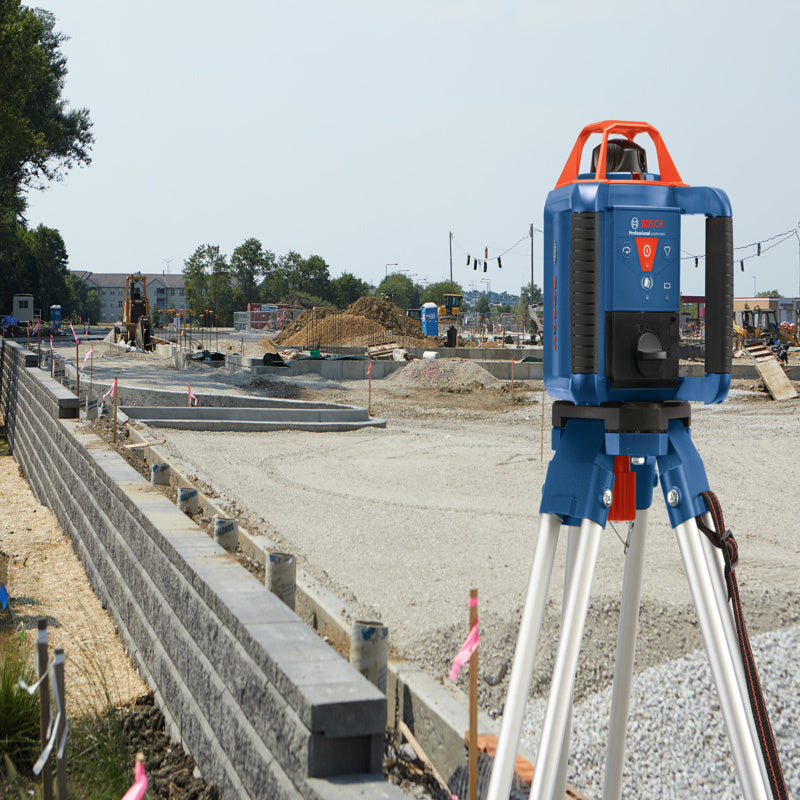 The Bosch Revolve900 Self-Leveling Horizontal/Vertical Rotary Laser Kit delivers a comprehensive solution for precise outdoor and indoor leveling. It features a horizontal/vertical self-leveling laser, suitable for leveling, aligning, and squaring applications. The rotary laser provides users with variable speed selection and manual scan angles for maximum visibility at different lighting conditions. It delivers accuracy of up to 1/8 in. at 100 ft. and a range of up to 1,000 ft. with LR10 laser receiver. The electronic self-leveling system has a disturbance monitor, which indicates to the user if tool position changes, ensuring consistent leveling accuracy on the jobsite. The laser has a metal cage and an IP54 rating. Easy to use, the kit includes a remote control that allows for one-person operation to handle leveling and grading tasks on the jobsite.