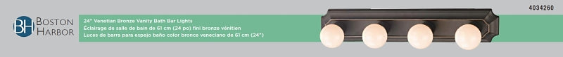 Boston Harbor 045234-VB Vanity Bar Fixture, 100 W, 4-Lamp, G Lamp, Steel Fixture, Venetian Bronze Fixture