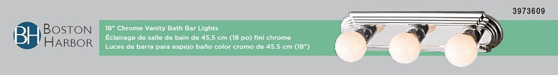 Boston Harbor 046043-CHROME Vanity Bar Fixture, 100 W, 3-Lamp, G Lamp, Steel Fixture, Polished Chrome Fixture