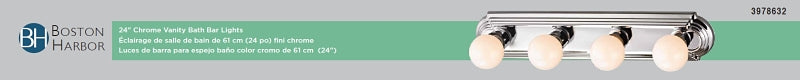 Boston Harbor 046044-CHROME Vanity Bar Fixture, 100 W, 4-Lamp, G Lamp, Steel Fixture, Polished Chrome Fixture