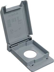 For 15 A or other single receptacles under 1-3/8 in Dia. Non-conductive, corrosion resistant and paintable for safe installation and operation in wet or damp locations. NEMA 3R rated and UL listed.