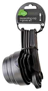 Cook's Kitchen Measuring Cup and Spoon Set, Black, Includes: 1 Cup, 1 Tablespoon and Matching Snap Open Organizer, 1 Teaspoon, 1/2 Cup, 1/2 Teaspoon, 1/4 Cup, 1/4 Teaspoon, 2/3 Cup