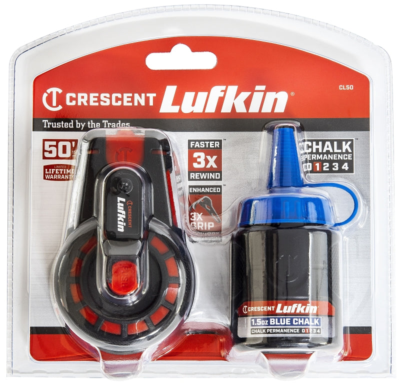 Crescent Lufkin CL50 Compact Chalk Reel, 50 ft L Line, Gear Rewind, 3:1 Gear Ratio