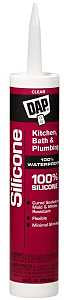 DAP 100% silicone kitchen and bath sealant is a one component, acetoxy cure material ideal for caulking and sealing in kitchen and bath areas. It provides a durable, watertight seal with minimal shrinkage. It offers long-lasting flexibility and excellent adhesion. Once cured, it is unaffected by temperature extremes (-40 to 400 deg F). Cured sealant in mildew-resistant.