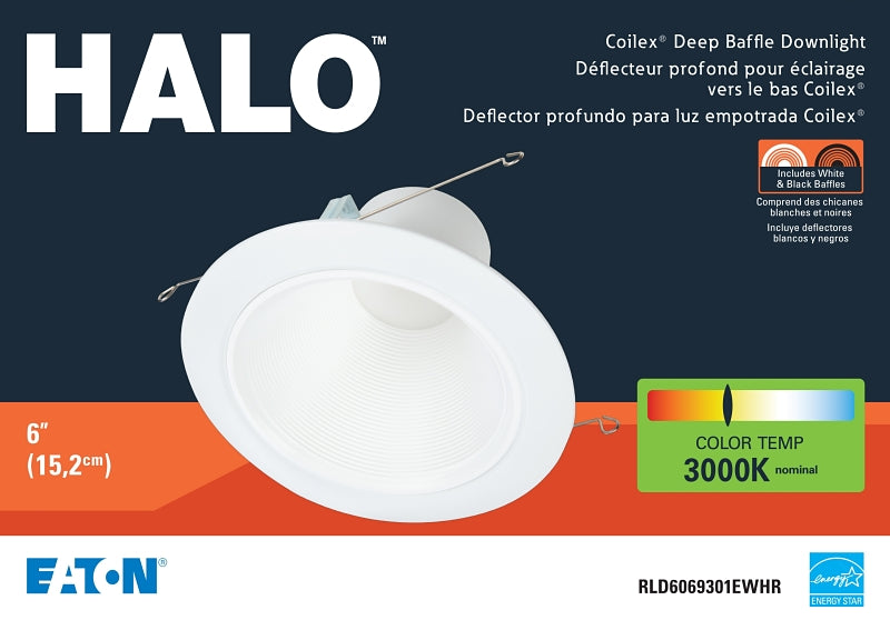Eaton Lighting RLD6069301EWHR Baffle Trim, 6 in Dia Recessed Can, White is backordered and will ship as soon as it is back in stock.