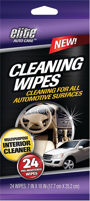 Elite Auto Care 8911 Automotive Wipes, 7 in L, 10 in W, 24-Wipes, Pack of 12