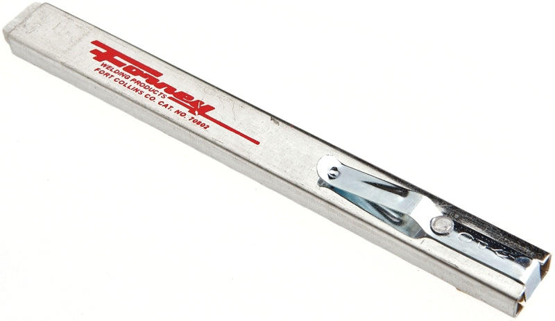 Ruggedly constructed flat steel soapstone holder comes with a channel case design and convenient spring pocket clip. Easily indexable and smooth operating. This holder is designed for one-handed operation, to adjust soapstone length, simply press brass trigger with thumb and index to the next positive stop. Fewer working parts and more usable soapstone. Proven and excellent design features that are widely used and preferred in the welding industry.