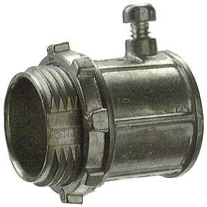 Zinc die-cast. Use to connect EMT conduit to steel outlet box, load center or other metal enclosure. UL approved.