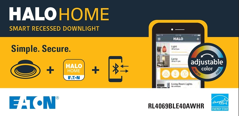 The Halo Home RL4 is an integrated LED module with Bluetooth Mesh connectivity for 4 in aperture recessed downlights. When paired with the Halo Home mobile app or Halo Home in-wall dimmers, the RL4 can be wirelessly controlled. Suitable for new construction, remodel and retrofit installation. Listed for use with Halo 4 in housings and classified for use with other 4 in housings, airtight and can be used with housings in direct contact with insulation. The RL4 is designed to connect to the Halo Home Bluetooth Mesh network with no hub or internet connection required.
