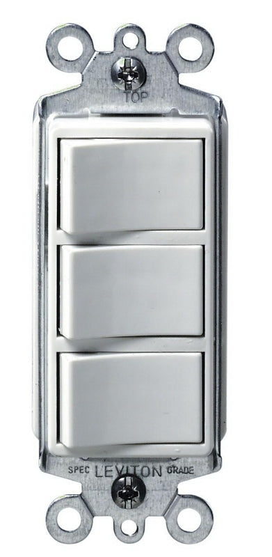Leviton Rocker Switch, 120 V, 15 A, Contact Configuration: SPST, Terminal Type: Lead Wire, Temperature Rating: -40 to 120 deg C, Wall Mounting, Housing Material: Thermoplastic, White, Dimensions: 4.2 in L x 1.29 in W x 1.55 in D.