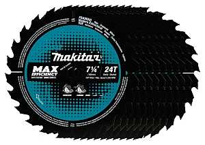 Makita B-61656-10 Circular Saw Blade, 7-1/4 in Dia, 5/8 in Arbor, 24-Teeth, Carbide Cutting Edge, 10/PK is backordered and will ship as soon as it is back in stock.