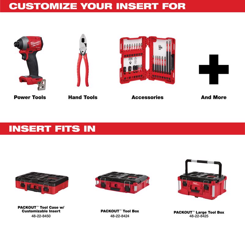 The Milwaukee Customizable Foam Insert for the Packout Drawer Tool Boxes allows you to customize your storage. You can cut out custom designs to securely store and protect your tools. The foam is layered to provide easier customization. This customizable foam insert fits in the Milwaukee Packout 2-Drawer and 3-Drawer Tool Boxes.The Milwaukee Packout modular storage system allows you to customize and build your own storage system to easily transport and organize your tools and accessories in your shop, shed, or garage.