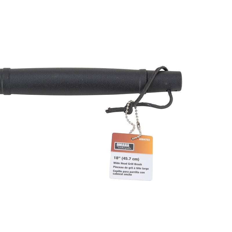 Omaha Wide Head Grill Brush, Brush Width: 6-3/4, Stainless Steel Bristle, Plastic Handle, Handle Color: Black, 18 in L, Includes: Leather Thong