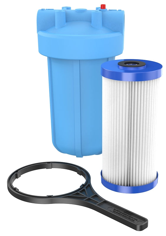 - 10 in Heavy-duty whole house filter housing with high capacity for larger homes