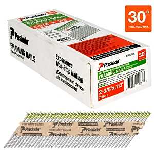 Our hot dipped galvanized Nails are independently proven to be the leader in galvanized fastening. They offer premium corrosion protection and reduce staining and streaking by 80%. They're designed and manufactured to match the specs of Paslode nailers so your nailer will run smooth, with fewer misfires and jams while driving flush, even into the toughest materials. They're IRC R319.3 code approved for use in pressure treated lumber in accordance with ASTM A 153. Rigid and compact, the RounDrive paper tape design gives you 10% more nails per strip. Plus, they are more durable and easier to handle than generic nails. Paslode nails are designed to reduce jams and misfires when used with Paslode nailers.